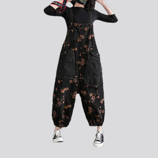 Floral baggy women's jeans overall