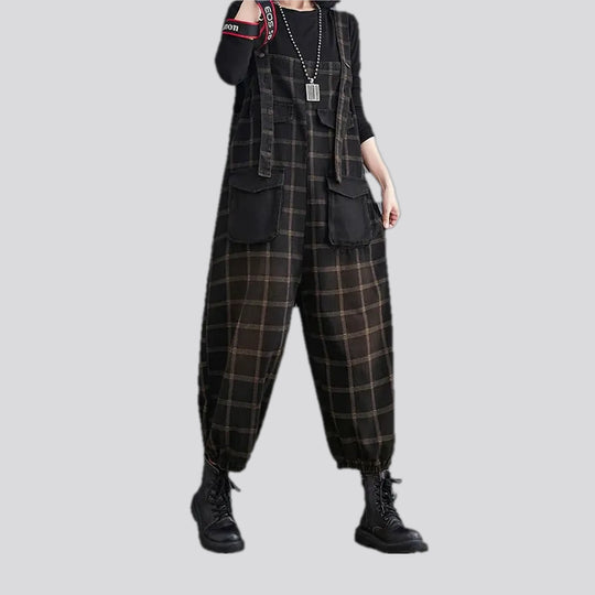 Dark pattern baggy fit 90s denim bib for women