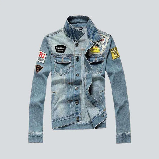 Slim ornament men's jean jacket