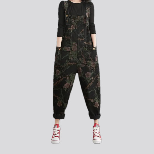 Baggy fit floral pattern women's denim overall